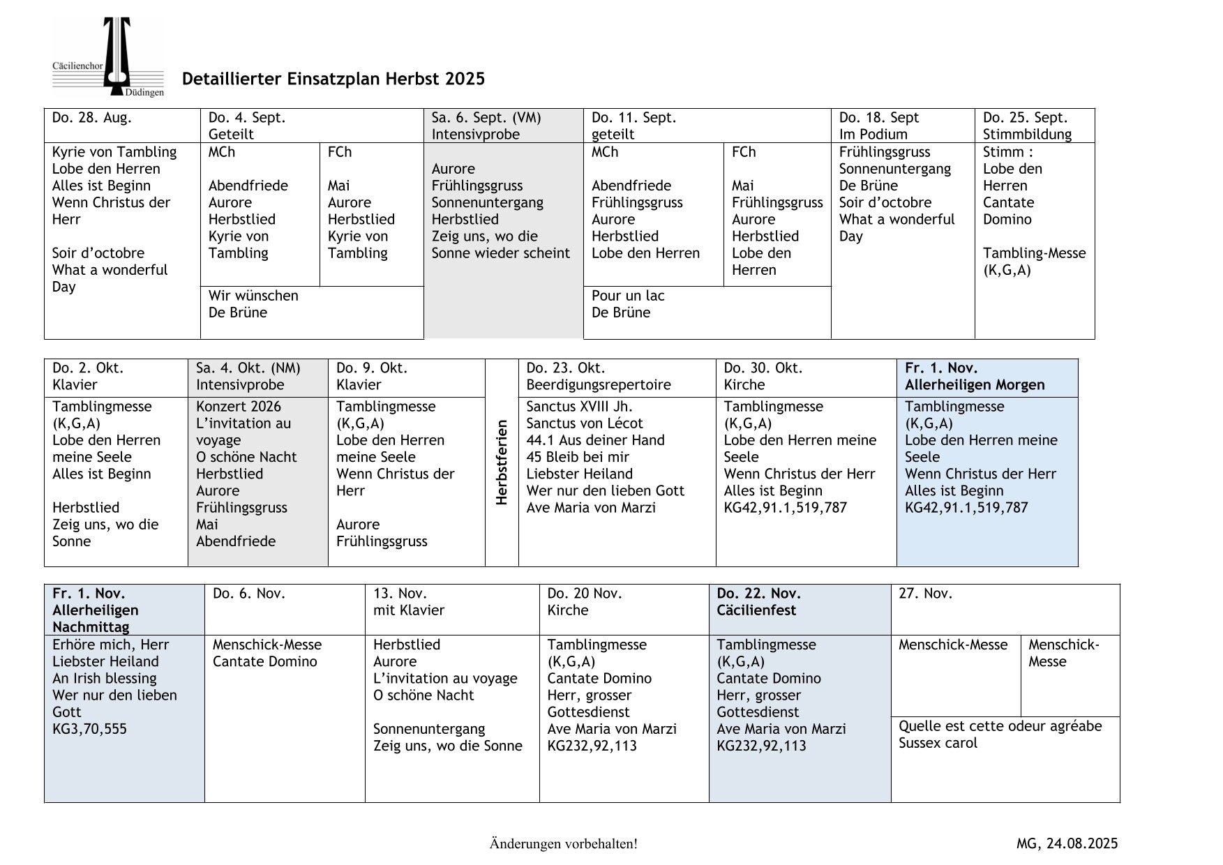 Proben jeweils Donnerstags, 19:30 - 21:30